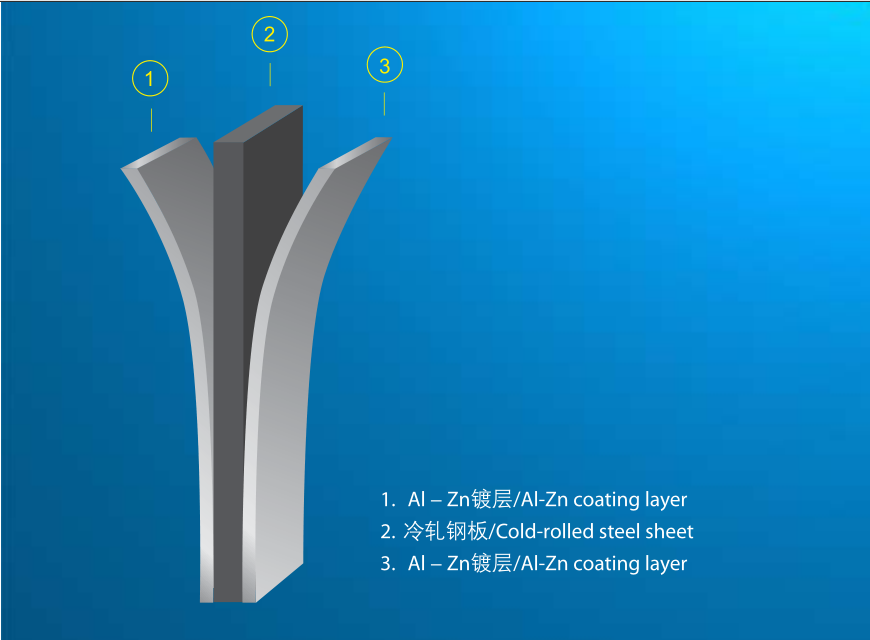 鍍鋁鋅鋼板是以各種強(qiáng)度和厚度規(guī)格的冷軋鋼板為基材,在雙面熱鍍一層 Al-Zn鍍層所得到的預(yù)鍍層鋼板,是一種最佳的鋁鋅合金。